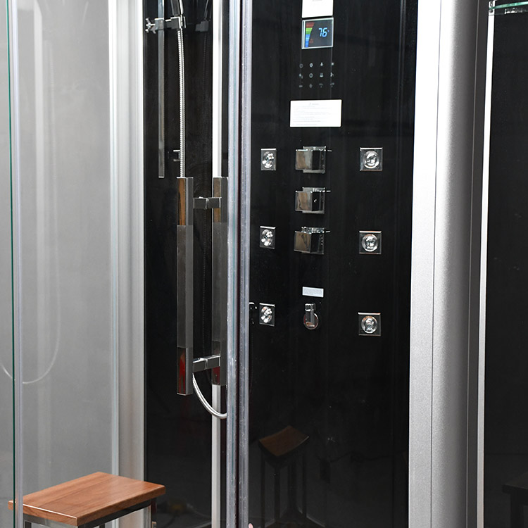 The DZ956F8 Rain Series free standing steam shower is a beautiful unit with clear thick glass encasing three sides allowing maximum lighting to enter the shower. This shower comes in black or white back glass and a left- or right-hand door configuration. Enjoy audio capabilities; back massage jets, overhead rain shower and more. This shower has a powerful steam generator with a cleaning function, making maintenance much easier. Make your home spa dreams come true.