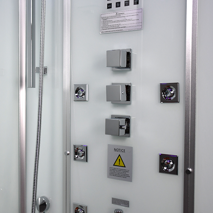 Redefine relaxation with the DZ959 Rain Series steam shower. Generate steam within minutes thanks to the built-in powerful steam generator. Temperature display, steam, volume, and other functions are controlled by an intuitive glass touch display panel. Bluetooth audio, chromatherapy lighting, and aromatherapy port enhance the shower experience to the next level. This unit comes in black or white, and you can choose between left- or right-handed configurations with a unique corner entry to fit your space. Available at Soak Luxury Bath Products.