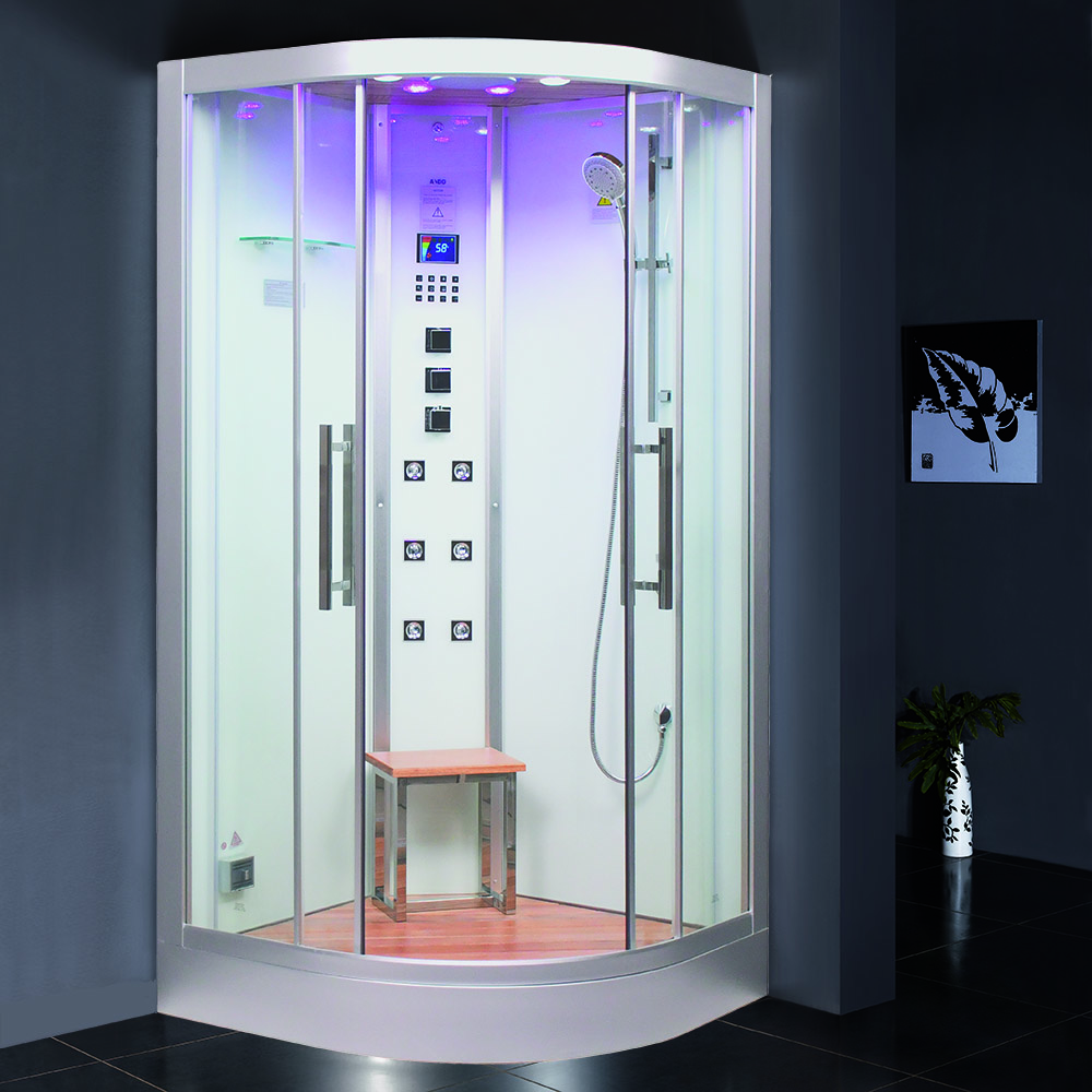 Discover the ultimate relaxation with the DZ963F8 Rain Series corner steam shower unit. Immerse yourself in a cloud of steam while enjoying the benefits of chromatherapy and a soothing massage from the multi-jets. Play your music through the built-in Bluetooth audio system and put in your favourite essential oils in the aromatherapy port to create a personalized spa like no other. The DZ963F8 comes in black or white and features double sliding glass doors. Get the perfect retreat with this modern steam shower.